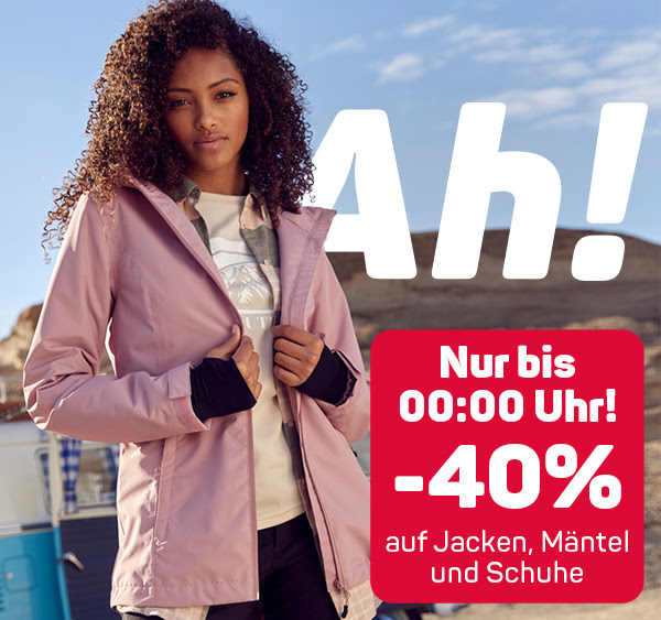 Bei Ackermann profitiert ihr nur heute von 40% Rabatt auf Jacken, Mäntel und Schuhe! Vorallem bei den reduzierten Artikeln könnt ihr so nochmals kräftig sparen.