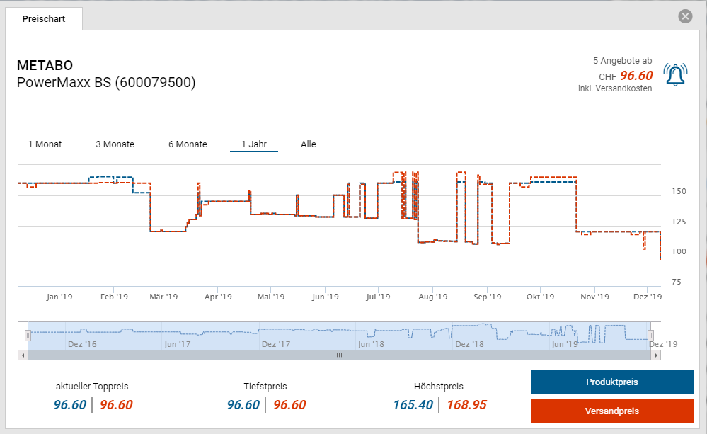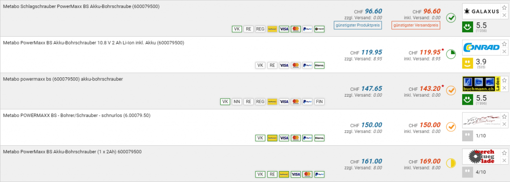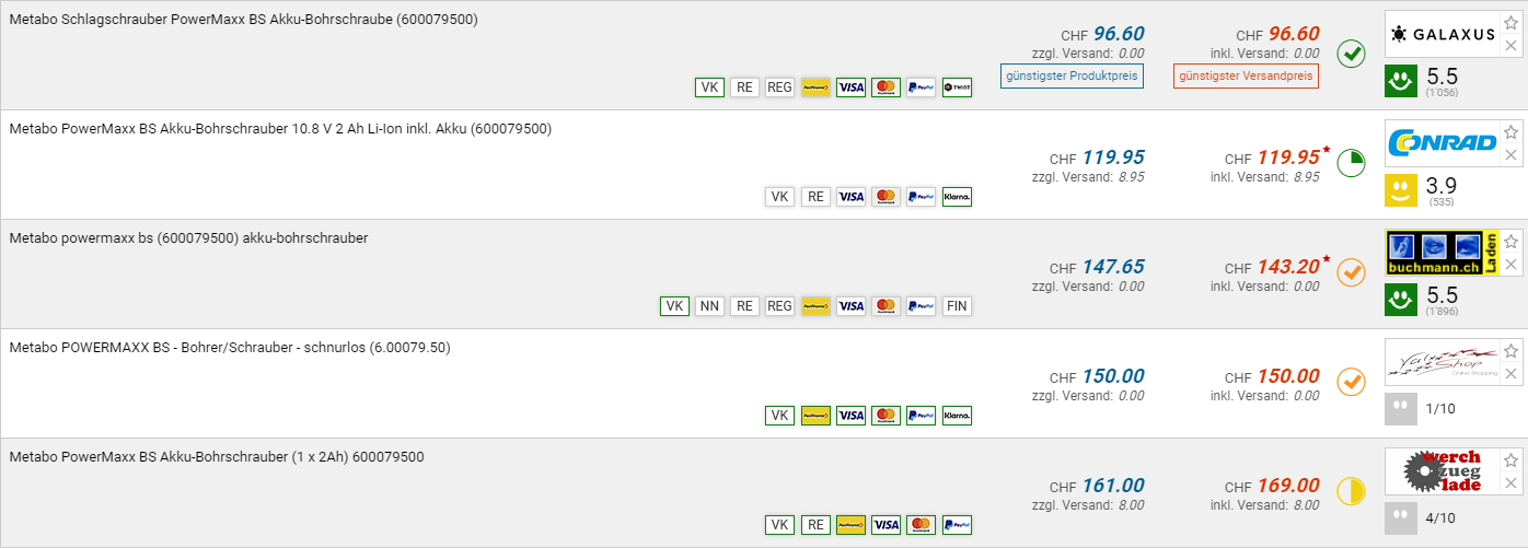 Bei Galaxus gibt es den METABO PowerMaxx BS Akku-Schrauber für den neuen Bestpreis von CHF 96.90. Der vorherige Bestpreis war CHF 105.50. Der zweitbeste Preis beträgt CHF 119.95.
