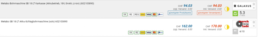 Bei Galaxus gibt es den Metabo SB 18 LT Akkuschlagschrauber für den neuen Bestpreis von CHF 94.03. Der vorherige Bestpreis war CHF 98.94. Der zweitbeste Preis beträgt CHF 170.-.