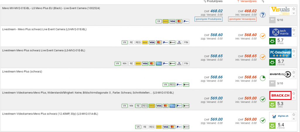 Bei Visuals gibt es die MEVO MV-MV2-01E-BL für den neuen Bestpreis von CHF 458.65, wenn man sich für den Newsletter anmeldet. Der vorherige Bestpreis war CHF 472.-. Der zweitbeste Preis beträgt CHF 568.60.
