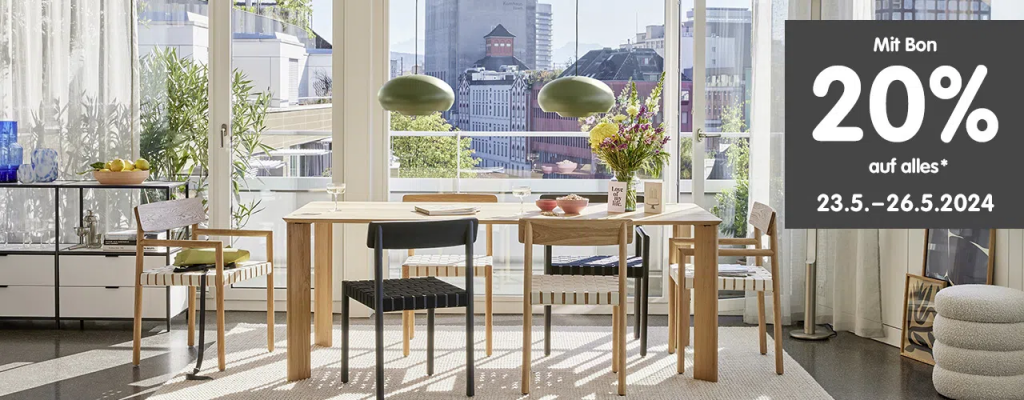 Die besten Deals von heute anzeigen*Gültig vom 23.5. – 26.5.2024 in allen Micasa-Filialen und im Online-Shop. Ausgenommen sind bereits reduzierte Artikel, Serviceleistungen wie z.B. Konfektion oder Heimlieferung sowie Gutscheine, Geschenkkarten, Smartboxen, E-Loading, das Sortiment von RELOVED, Cucina & Tavola, KITCHEN & CO. sowie die PICTO-, und SOLE-Kollektion. Nicht kumulierbar mit anderen Aktionen oder Rabatten. Der Preisvorteil gilt nur bei Neuaufträgen.