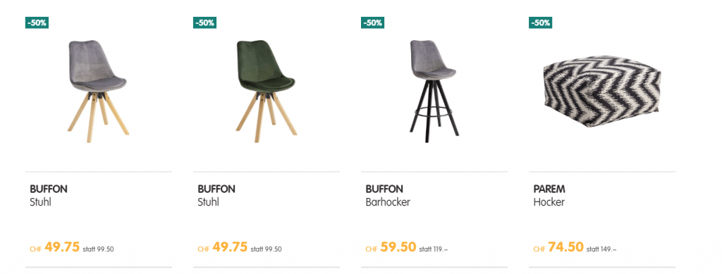 Bei Micasa erhält man dieses Weekend 50% Rabatt auf ausgewählte Stühle. Ich denke, das sind ganz gute Preise.