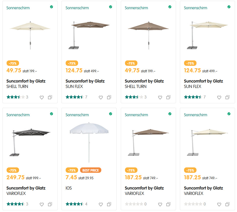 Der nächste Sommer kommt bestimmt ! Glatz Markensonnenschirme bei Micasa mit 75% Rabatt.