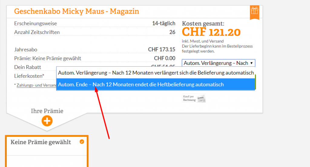 Damit sich das Abo nicht automatisch verlängert, im Dropdown die Option fürs automatische Ende auswählen: