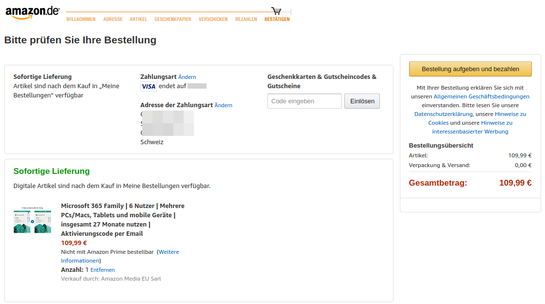 Bei mir funktioniert es sogar mit Schweizer Adresse: