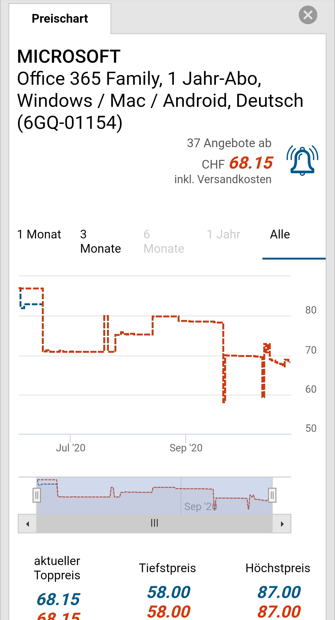 Genau vor einem Monat kostete es 65 CHF (Mit der Suche oben rausgefunden)