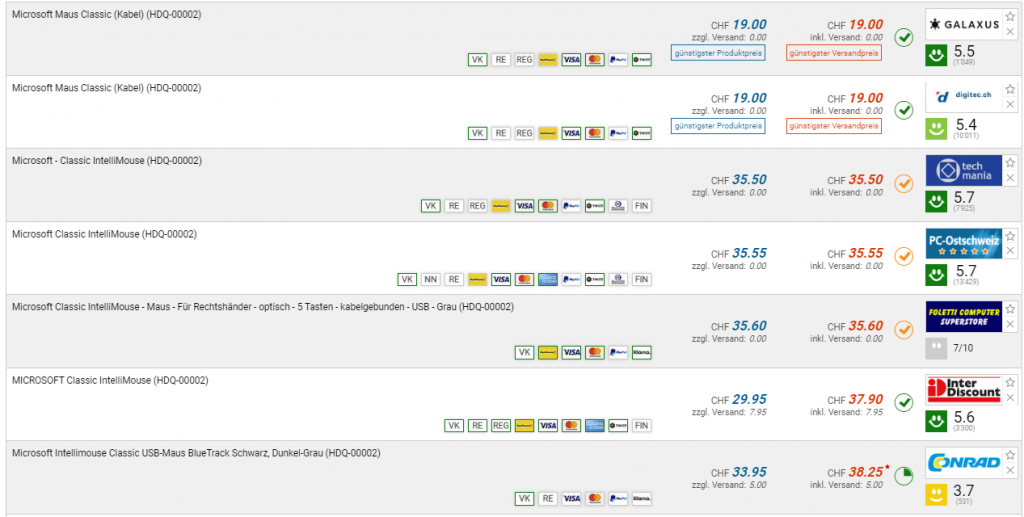 Bei digitec und dem Schwestern-Shop galaxus gibt es die MICROSOFT Classic IntelliMouse für den neuen Bestpreis von CHF 19.-. Der vorherige Bestpreis war CHF 29.-. Der zweitbeste Preis beträgt CHF 35.50.