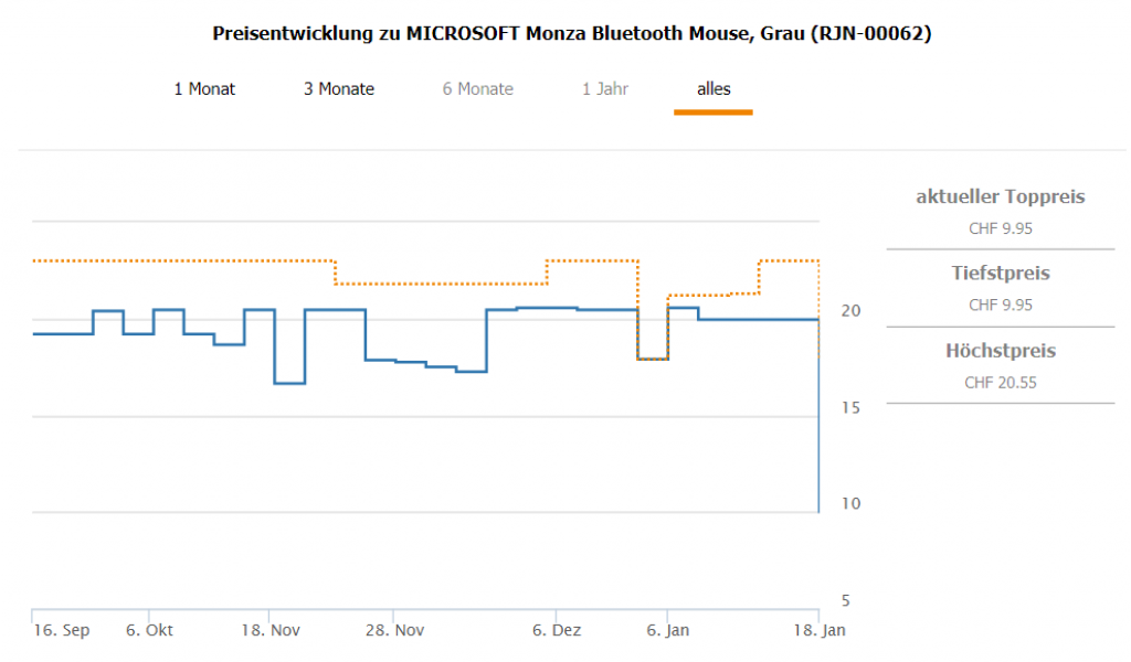 Bei Interdiscount gibt’s gerade die MICROSOFT Monza Maus in der Farbe grau für CHF 9.95 (nur bei Abholung). Die 180 Filialen sollten bei jedem in der Nähe sein und sind ab jetzt in vielen Fällen zw. 10-14 Uhr sowie von 16-19 Uhr geöffnet.