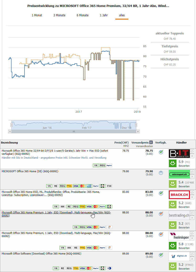 Ich habe 2017 und 2018 drei 1 Jahres Lizenzen gekauft bei Aktionen für 49 Franken und aktiviert.