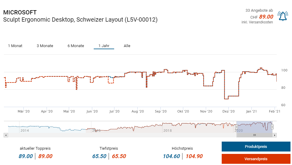 Bei Mediamarkt gibts derzeit die ergonomische Tastatur/Maus-Kombi Sculpt Ergonomic Desktop von Microsoft zum Aktionspreis von 89 Franken. Zuletzt gabs am Black Friday (ebenfalls bei Mediamarkt) den sehr guten Preis von 69 Franken fürs Set (und Juelu überlegte ernsthaft sich mit 3 Stück einzudecken - für sich selbst! Wenn das mal kein Glaubensbekenntnis ist 😉 ).