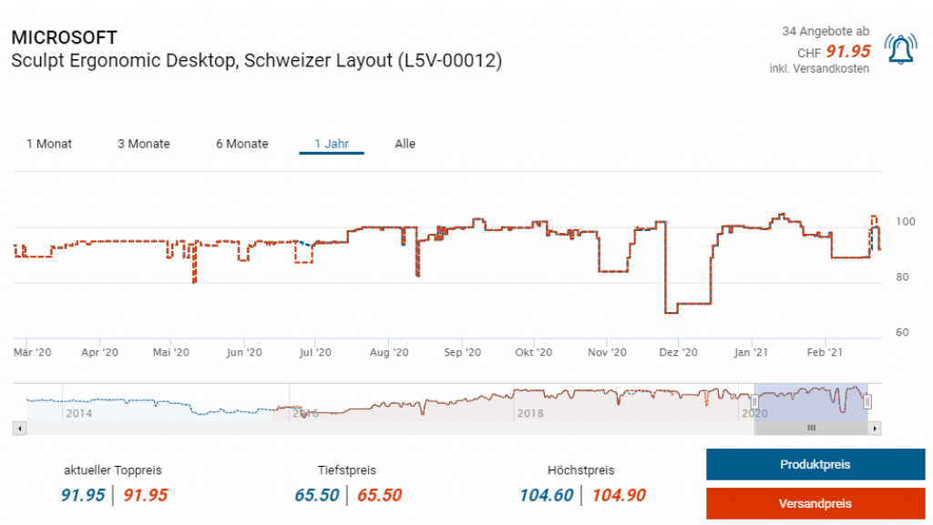 Bei Mediamarkt gibts derzeit die ergonomische Tastatur/Maus-Kombi Sculpt Ergonomic Desktop von Microsoft zum Aktionspreis von knapp 92 Franken. Am Black Friday gabs das Set aber auch für wesentlich weniger, nämlich 69 Franken. Der Vergleichspreis liegt derzeit bei 104 Franken.