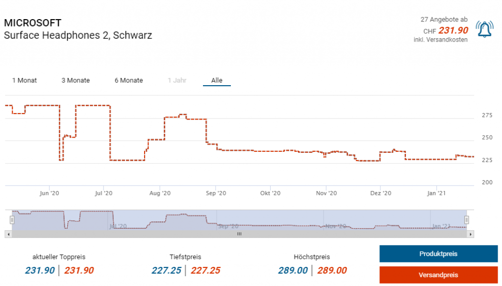 Bei Amazon gibts derzeit die Overear-Kopfhörer Microsoft Surface Headphones 2 in Aktion für knapp 209 Franken. Laut toppreise liegt der Vergleichspreis bei knapp 232 Franken.