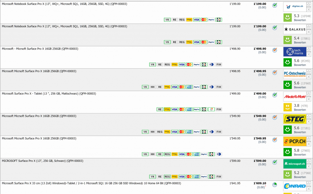 Zweitbester Preis liegt zur Zeit bei CHF 1498.90, Bestpreis war bei CHF 1354.-