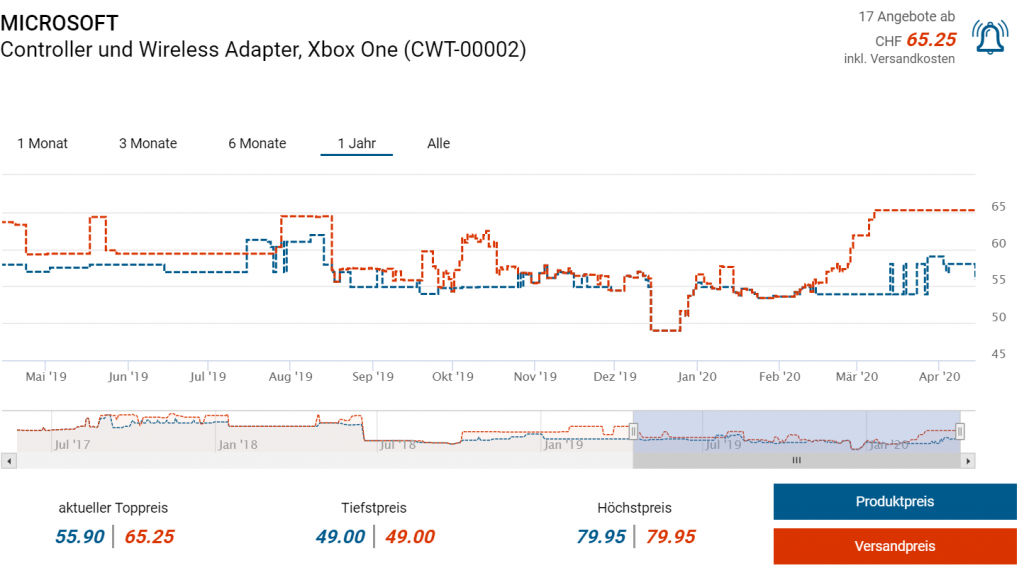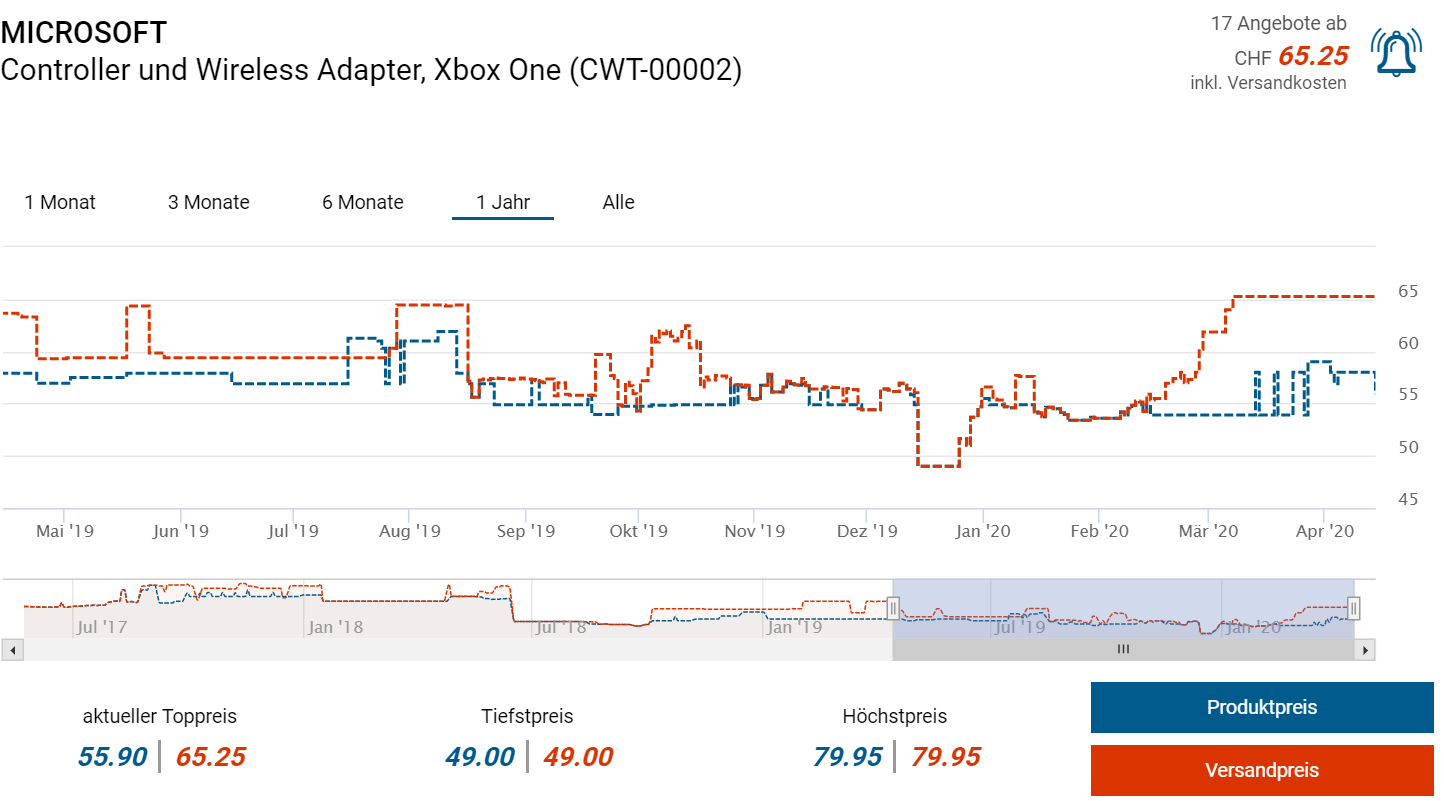 Allzeit bester Preis gemäss Toppreise war 49.- und ist im Moment 65.25.