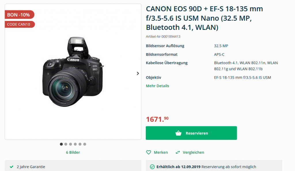Brandneue: CANON 90D+18-135 release erst im September schon für 1504.71 CHF vorbestellbar.
