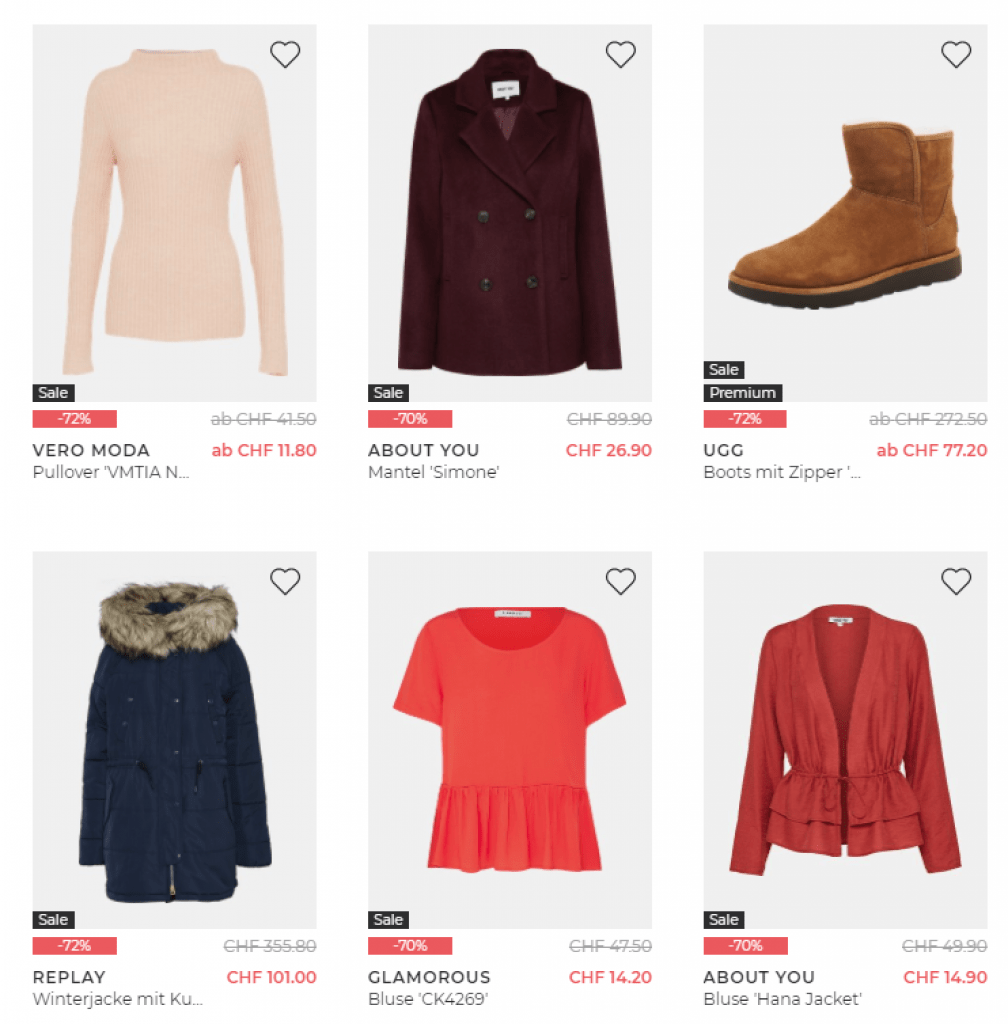 Bei AboutYou hat der Mid-Season Sale begonnen. Viele Artikel wurden dabei sehr stark reduziert. Zum Beispiel gibt’s über 1’000 Artikel im Damen-Sale, die mit 70% und mehr reduziert sind. Für Männer gibt’s immerhin über 200 Artikel mit 70% Rabatt und mehr.