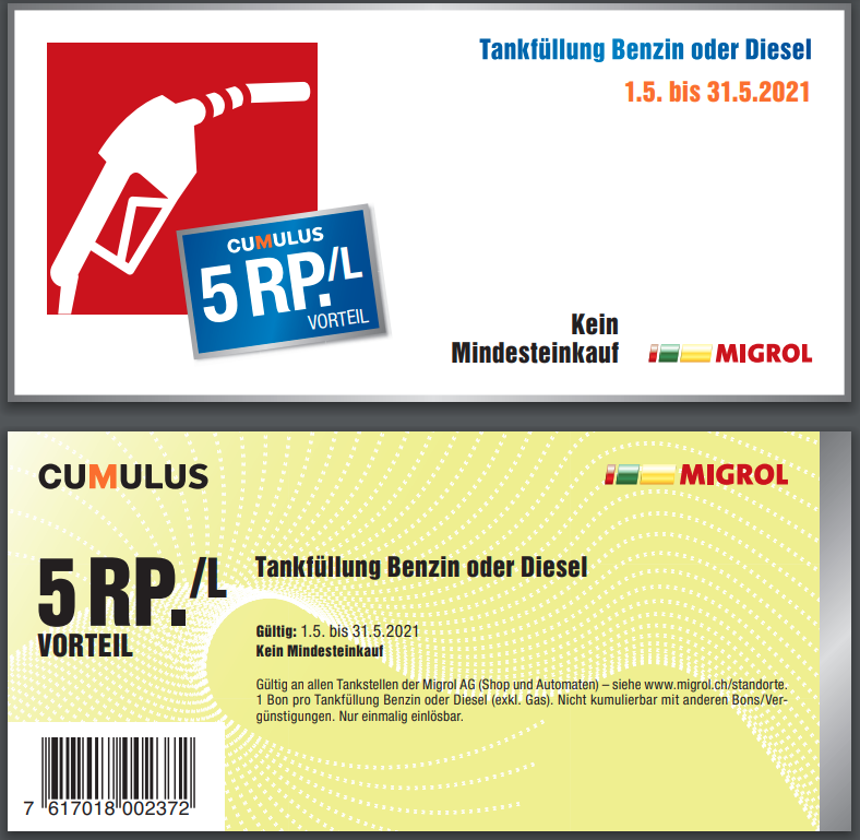 Migrol 5 Rp./L Rabatt auf Benzin und Diesel