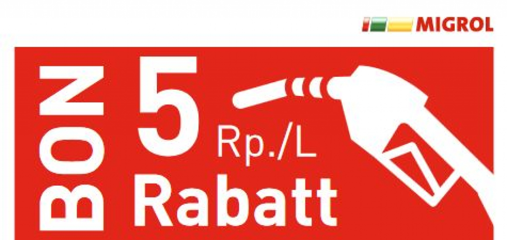 Migrol Gutschein für 5 RAPPEN / Liter Treibstoffrabatt bis 30.06.2024