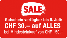 Einlösbar in allen Do it + Garden-Filialen bei einem Einkauf ab Fr. 150.– gegen Vorweisen des Coupons oder auf doitgarden.ch mit dem Code Sale30 aktivieren. Jeder Coupon nur einmal einlösbar und nicht kumulierbar. Ausgenommen sind Service- und Dienstleistungen, nur online erhältliche Artikel sowie Getränke und Esswaren.