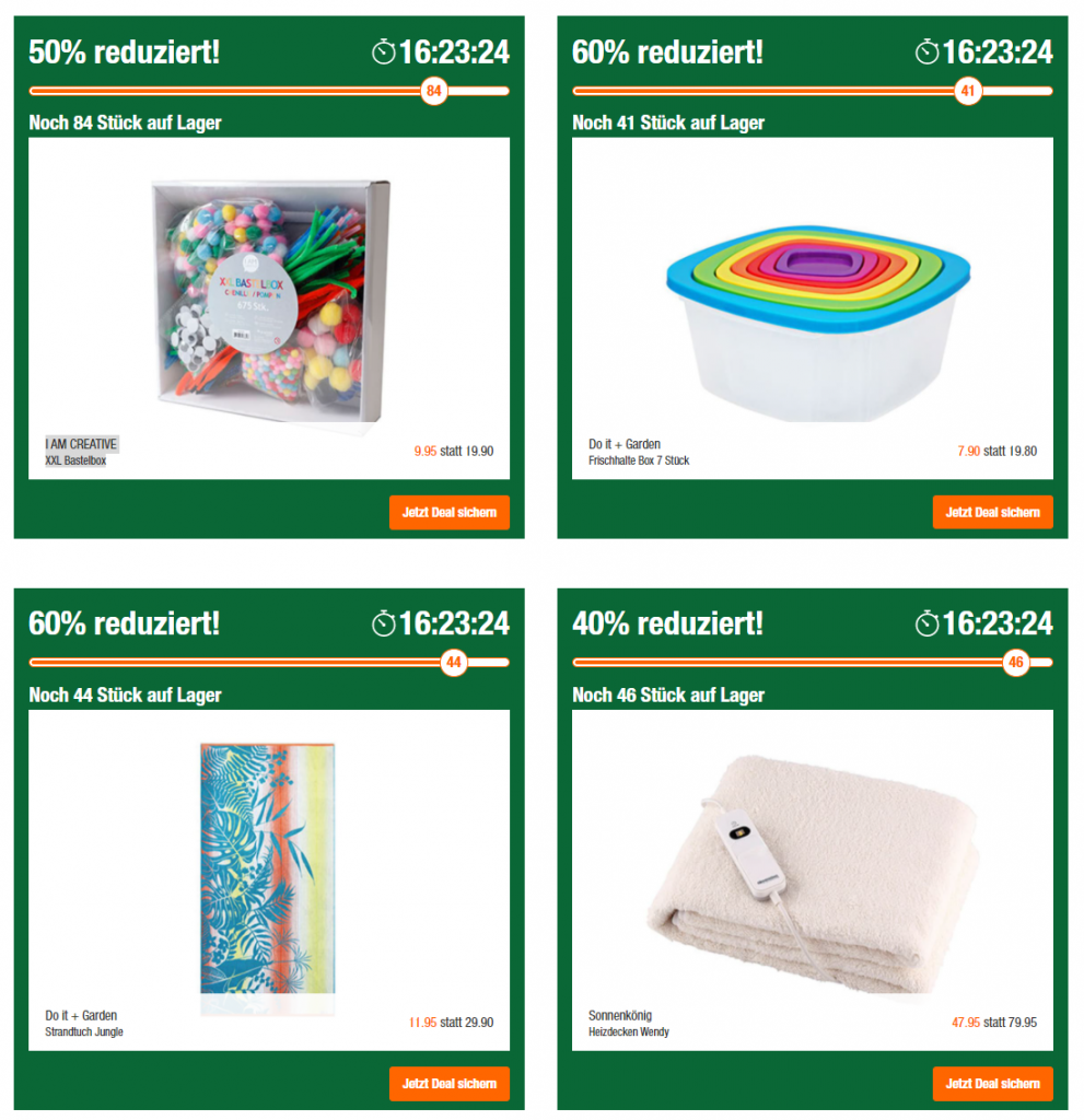 Bei den Migros doit + garden 24h Hits hat es diese Woche mal neue Artikel. Viele Eigenmarken d.h. ohne Preisvergleich. Die Artikel die man vergleichen kann, sind jedoch tatsächlich Bestpreis. Beispielsweise die I AM CREATIVE XXL Bastelbox für CHF 9.90 (gemäss Google Shopping ab CHF 19.90 bei Galaxus und weiteren Händlern) oder der Sonnenkönig Deficube für CHF 37.45 (Zweitbester Preis bei MediaMarkt bei CHF 49.95)