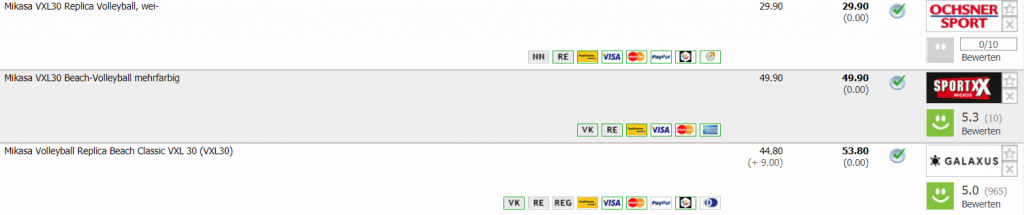 Bei Ochsner Sport gibt’s gerade das Replika des offiziellen Beachvolleyball Spielballes VLS 300 für CHF 29.90. Der zweitbeste Preis in der Schweiz liegt bei CHF 49.90. Den Volleyball gab’s schon einmal für CHF 29.- aber noch nie günstiger.