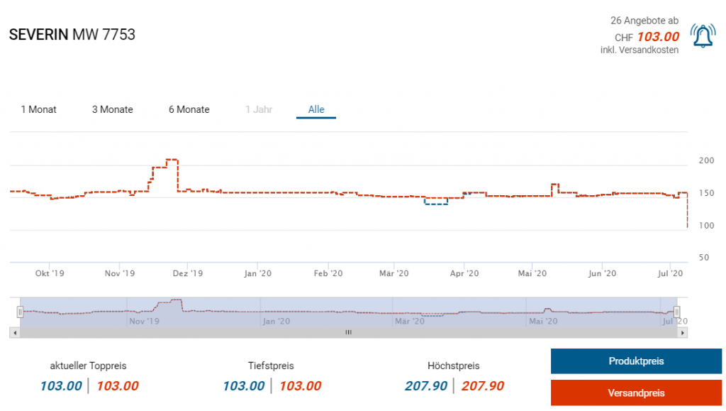 Beim eher unbekannten Onlineshop freecall24 gibts derzeit die Mikrowelle MW 7753 von Severin zum Aktionspreis von 103 Franken. Laut toppreise liegt der zweitbeste Preis bei 157 Franken, ein kurzer Abgleich mit Amazon widerlegt dies aber, da gibts die Mikrowelle ab ca. 130 Franken.