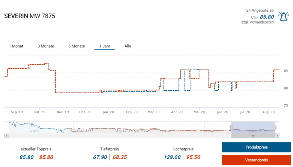 Bei Amazon gibts derzeit die Mikrowelle MW 7875 von Severin mit Grillfunktion zum Bestpreis von knapp 59 Franken. Laut toppreise liegt der Zweitpreis derzeit bei CHF 85.80, den bisherigen Bestpreis soll es vor einigen Jahren für unter 68 Franken gegeben haben.