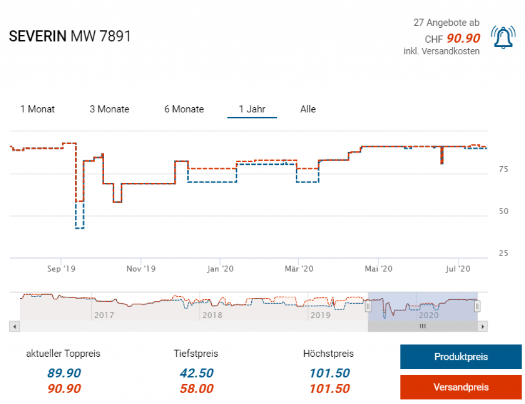Bei Amazon gibts derzeit die einfache Mikrowelle MW7891 von Severin zum Aktionspreis von knapp 70 Franken. Laut toppreise kostet dasselbe Modell in der Schweiz fast 91 Franken. Angeblich solls dieses Modell bereits einmal für 58 Franken gegeben haben.