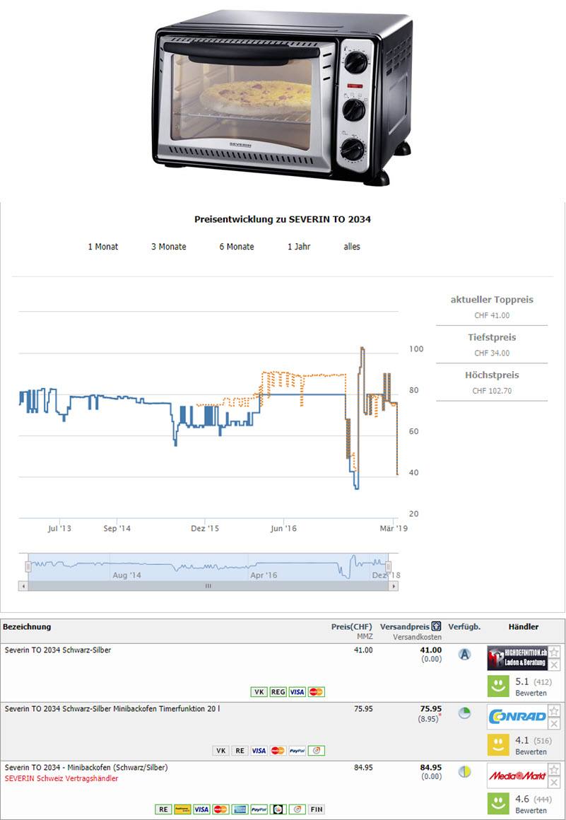 Bei highdefinition.ch gibt es momentan den praktischen und gut bewerteten Minibackofen Severin TO 2034 mit Timerfunktion für CHF 41.- bei Abholung vor Ort (ansonsten zusätzlich happige CHF 18.- Portokosten anfallen).