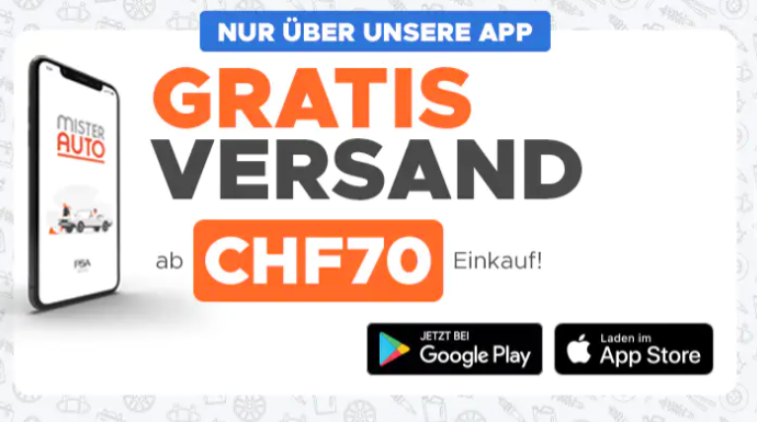 Aktuell ist eine Aktion von Mister-Auto.ch bis Dienstag in Höhe von 25% Rabatt verfügbar. Eine Mindestbestellwert ist nicht nötig. Wenn Ihr noch über die App bestellt, könnt Ihr die Versandkosten ab Bestellwert CHF 70.- sparen.