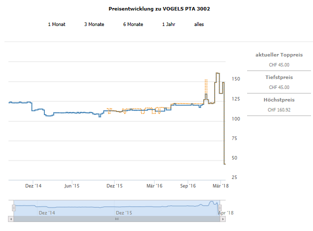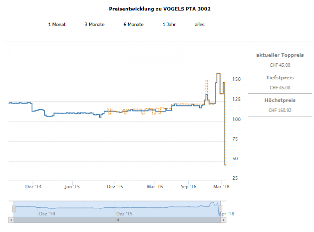 Der Preis ist noch nie unter 105.20 CHF gesunken.