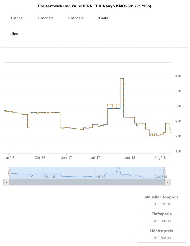 Gemäss toppreise gab es das Klimagerät bislang nie günstiger als für 206.30 CHF, der zweitbeste Preis liegt aktuell bei 229.- CHF.