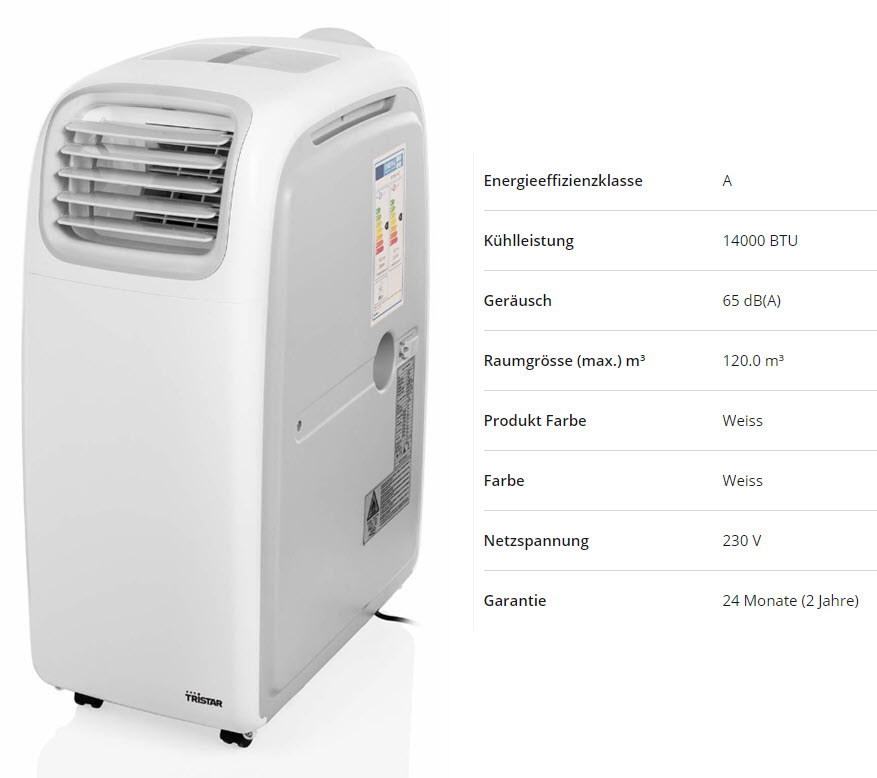 Passend zu den höheren Temperaturen gibt es bei Nettoshop momentan das mobile Klimagerät Tristar AC-5564 für CHF 759.05 wenn man beim Checkout den 5% Rabattcode PBW-5-1903 verwendet (der nächstbeste Preis liegt aktuell bei Officeworld bei CHF 899.- sowie bei Mediamarkt bei CHF 959.- / ein Preisverlauf lies sich leider nicht finden).
