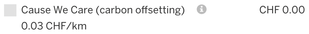 1) Vergessen Sie nicht, die CO2-Kompensation zu deaktivieren, wenn Sie nicht 0.03 CHF/km extra bezahlen wollen (in meinem Fall war sie standardmässig aktiviert)