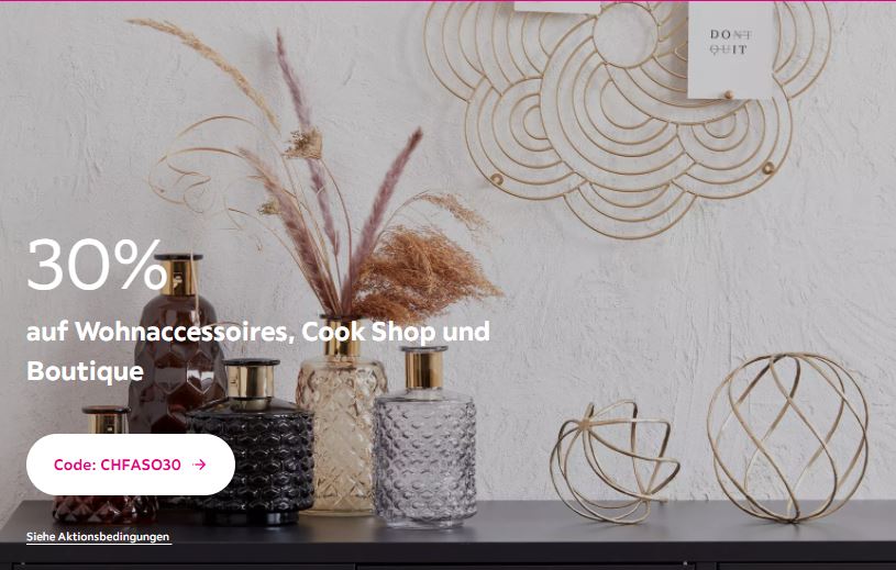 Vom 8. - 14. November gibt es 30% Rabatt auf die Kategorien Wohnaccesoires, Cook Shop und Boutique bei Mömax.
