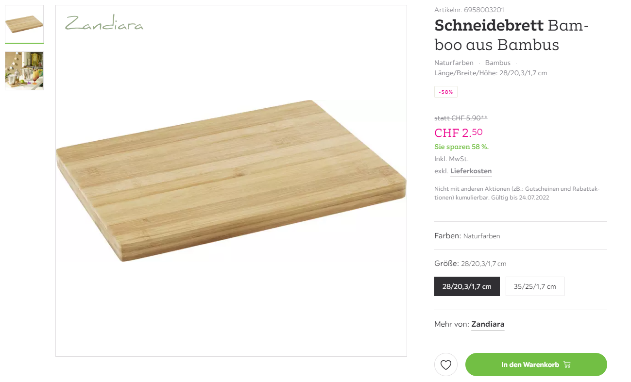 Zum Beispiel gibt’s das Schneidebrett aus Bambus von Zendiara für nur 2.50 Franken!