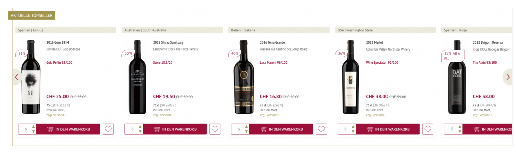 Zudem gibt’s gerade viele Weine mit recht guten Rabatten bis zu 50%.