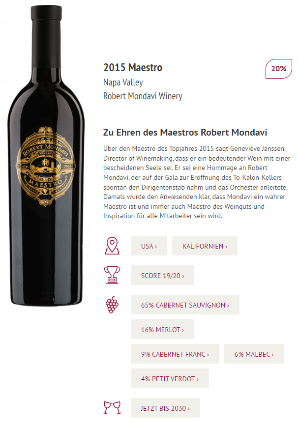 2014 Maestro & 2015 Maestro Robert Mondavi - kalifornischer Cabernet Sauvignon (hauptsächlich) für CHF 46.60 anstatt CHF 59.22