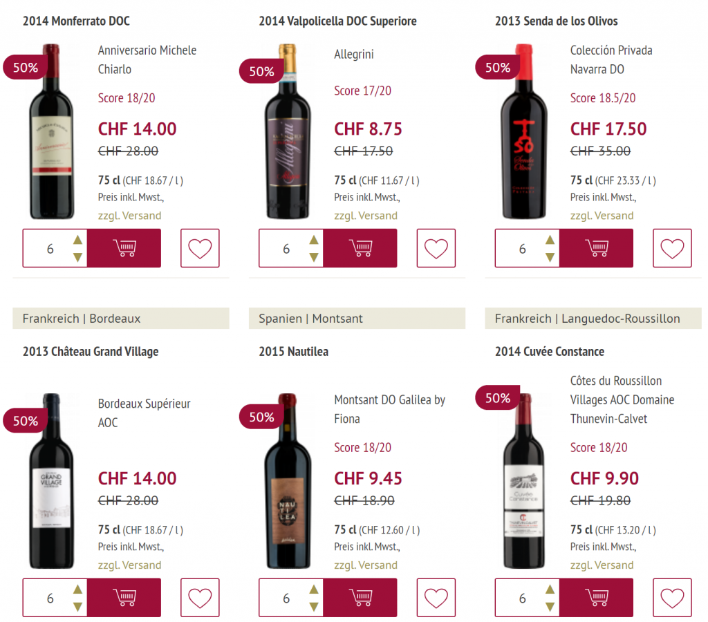 Bis am Sonntag, 29. März, gibt’s bei Mövenpick Weine einen Super SALE. Es gibt 50% auf eine grosse Auswahl an Weinen. Es ist kein Gutscheincode notwendig zum Profitieren.