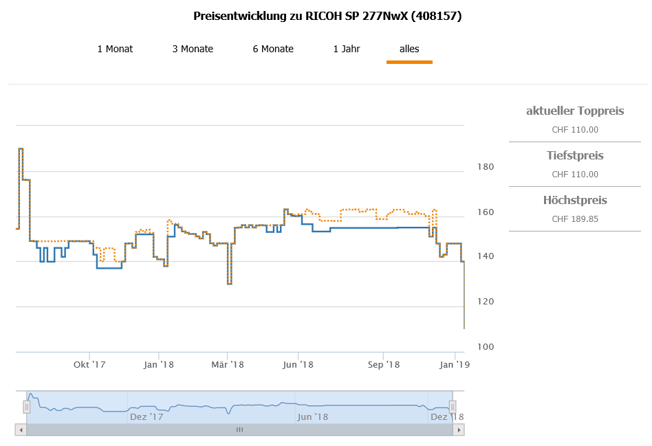 Bei digitec gibt es aktuell den Mono-Laserdrucker RICOH SP 277NwX für 110.- CHF.