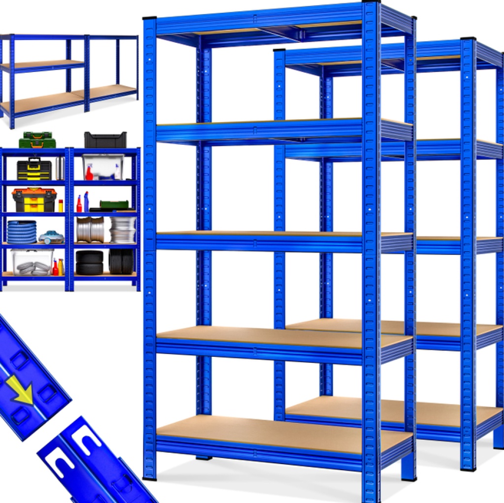 Dieses Schwerlastregal-Set bietet dir eine robuste und vielseitige Lösung für die Aufbewahrung schwerer Gegenstände in Keller, Werkstatt oder Wohnung. Die pulverbeschichtete Stahlkonstruktion sorgt für Stabilität und Langlebigkeit, während die fünf variabel montierbaren MDF-Böden viel Platz für deine Werkzeuge, Vorräte oder andere Utensilien bieten. Mit einer Tragkraft von bis zu 175 kg pro Boden und insgesamt 875 kg pro Regal kannst du auch schwere Lasten sicher lagern. Zudem lässt sich das Regal dank Stecksystem einfach aufbauen und sogar zu einer Werkbank umbauen. So erhältst du eine praktische und flexible Aufbewahrungslösung, die sich optimal an deine Bedürfnisse anpasst