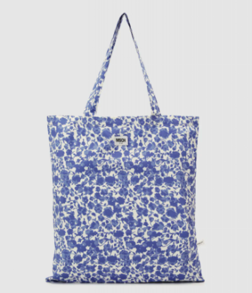 Die Tasche ist blau geblümt und eignet sich ideal auch als Badi bzw. Strandtasche. Sie besteht zu 100% aus organischer Baumwolle.