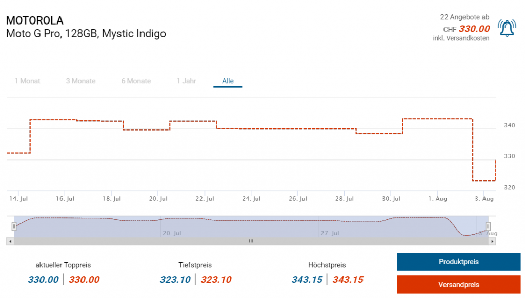 Im Lenovo Shop kann man sich derzeit das preiswerte Smartphone Motoral G Pro it 4GB RAM und 128GB Massenspeicher zum Preis von CHF 280.49 sichern. Laut toppreise kostet dasselbe Smartphone beim zweitgünstigsten Anbieter (digitec) derzeit 330 Franken, günstiger als für CHF 323.10 vor wenigen Tagen soll es das Handy zudem nicht gegeben haben.