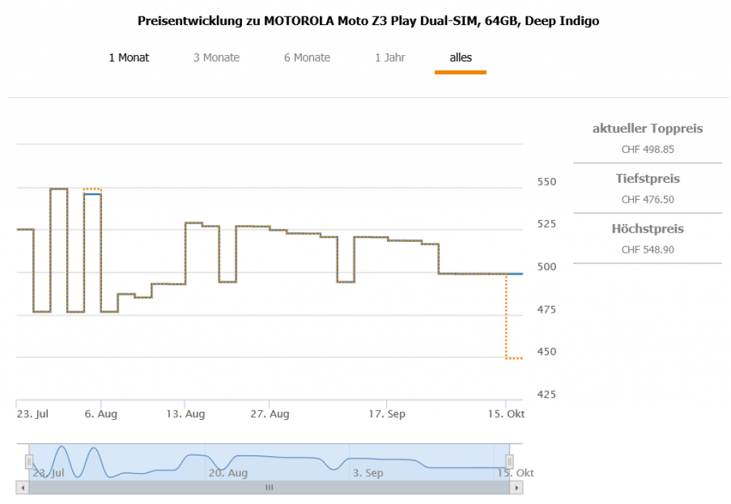 Gemäss toppreise gab es das Handy bislang nie günstiger als für 476.50 CHF, der zweitbeste Preis liegt aktuell bei 498.85 CHF. Bei digitec kostet das Handy aktuell zum Beispiel 538.- CHF.