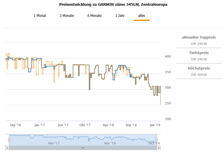 Gemäss toppreise war der bestprice bislang bei 279.90 CHF, der zweitbeste Preis liegt aktuell bei 309.90 CHF.