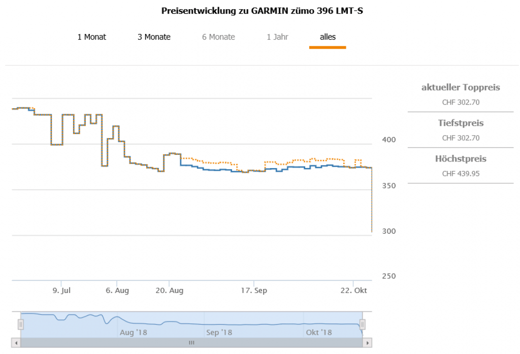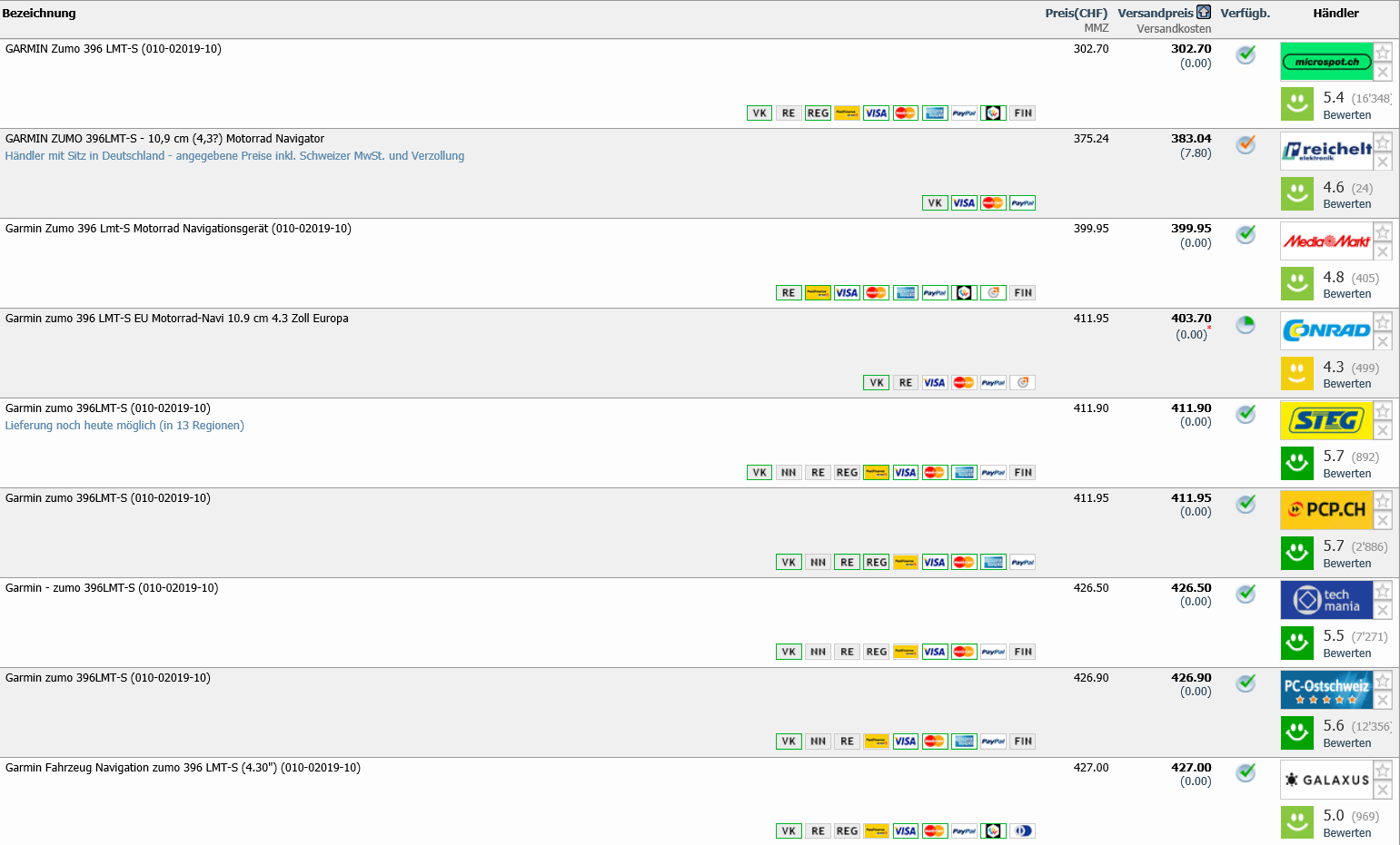 Best price bislang waren 350.20 CHF, der zweitbeste Preis liegt aktuell bei 383.04 CHF.