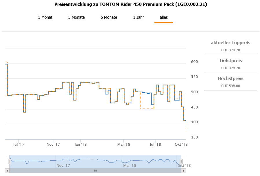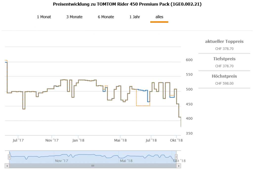 Gemäss toppreise gab es das Navi bislang nie günstiger als für 439.20 411.70 CHF, der zweitbeste Preis liegt aktuell bei 521.90 CHF.