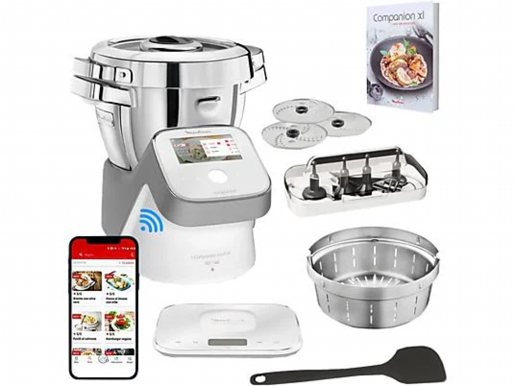 Bringen Sie mit der i-Companion Touch XL Küchenmaschine von Moulinex jeden Tag gesunde Gerichte auf den Tisch. Das intuitive Touchscreen-Display begleitet Sie durch den Garvorgang und ermöglicht Ihnen Zugriff ein schier unerschöpfliches Repertoire an leckeren, selbstgemachten Rezepten. Das Beste: Sie brauchen bei der Zubereitung der Speisen nicht neben der Küchenmaschine stehen bleiben; das Gerät hackt, verarbeitet und kocht Ihre Mahlzeiten von ganz allein und hält Ihre Speisen zudem bis zum Servieren warm! Der i-Companion Touch XL Kochautomat versorgt Sie und Ihre Liebsten ganz einfach mit vielen gesunden Gerichten!