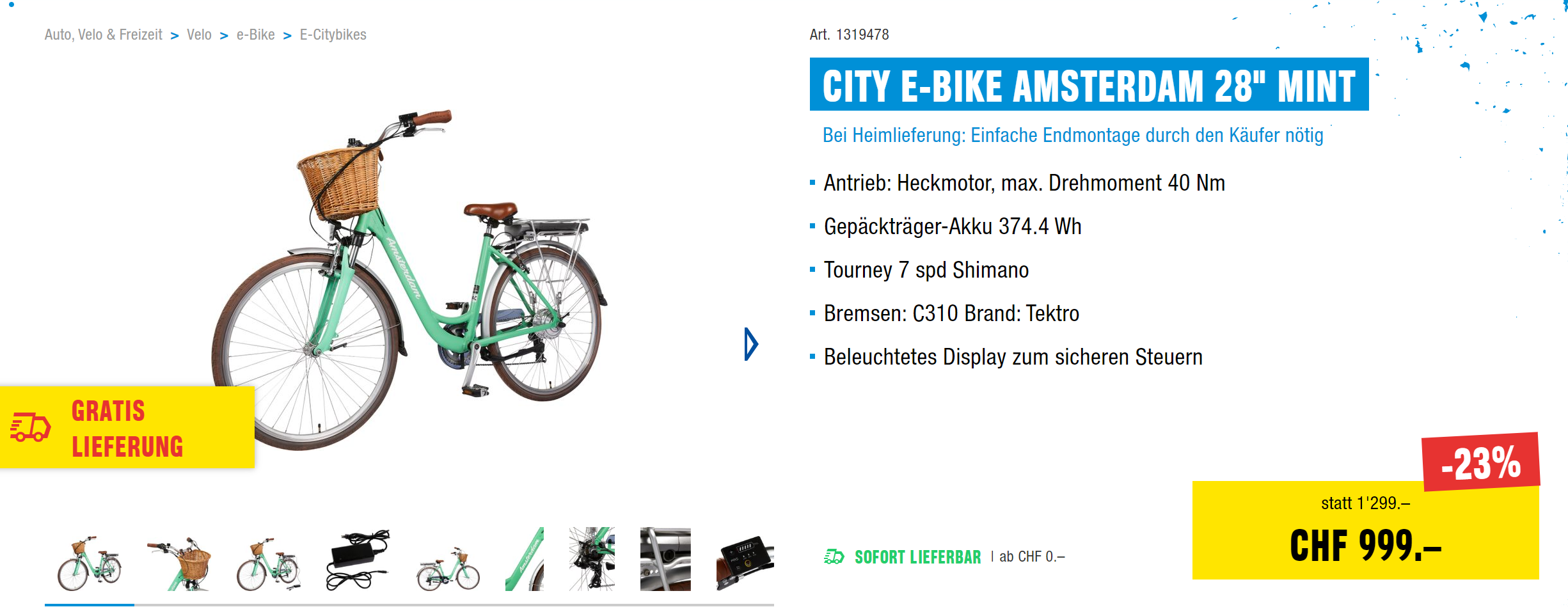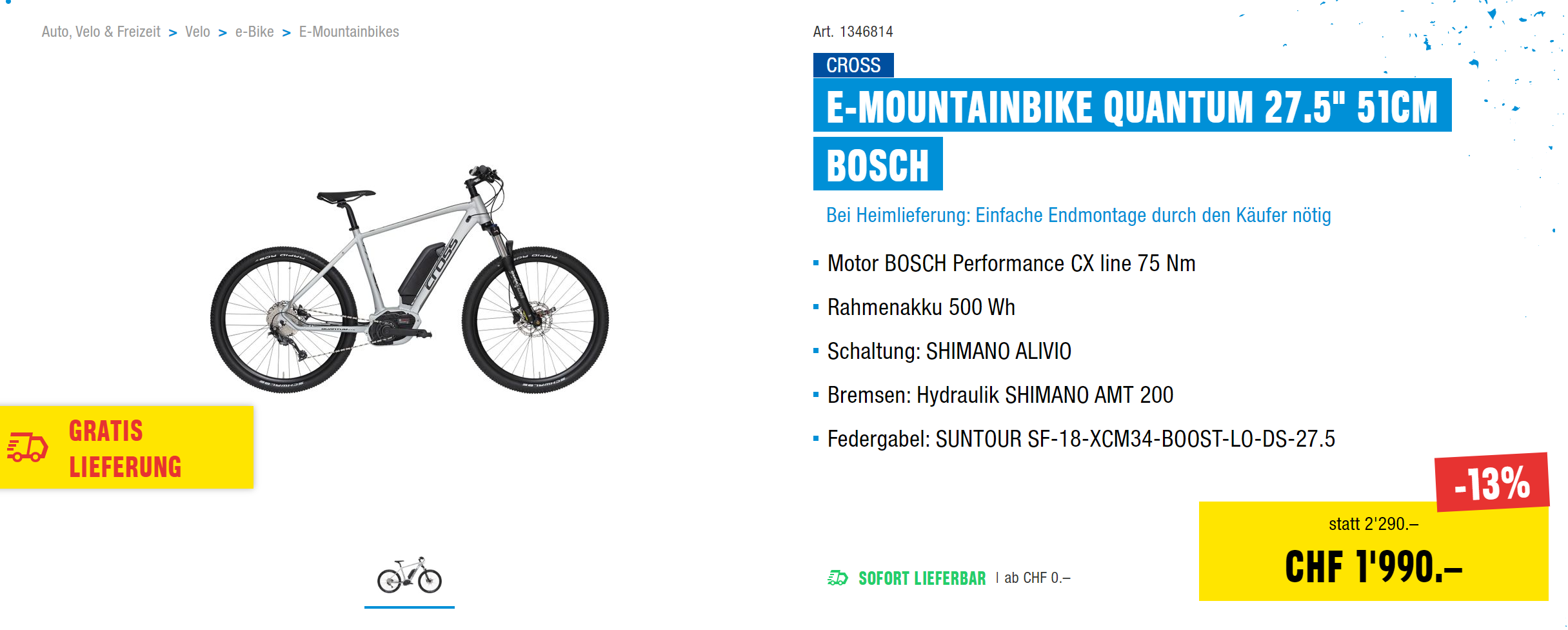 Bei Jumbo gibt’s aus aktuellem Anlass gerade das Mountainbike Corona für CHF 229.- inklusive gratis Lieferung. Die Lieferung erfolgt innert 2-3 Werktagen - obwohl beim Checkout eine längere Lieferdauer angegeben ist. Die Lieferung der Velos erfolg aus einem anderen Lager, das schneller liefern kann.