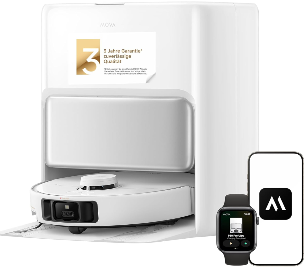 Momentan gibt’s bei Amazon den Mova P50 Pro Ultra Saugroboter mit Wischfunktion, 19’000 Pa, zum neuen Bestpreis von umgerechnet 472.40 Franken. Andere Anbieter verlangen aktuell sonst einen Preis von 579.– Franken. Bis wann das Angebot gilt, ist leider unbekannt.